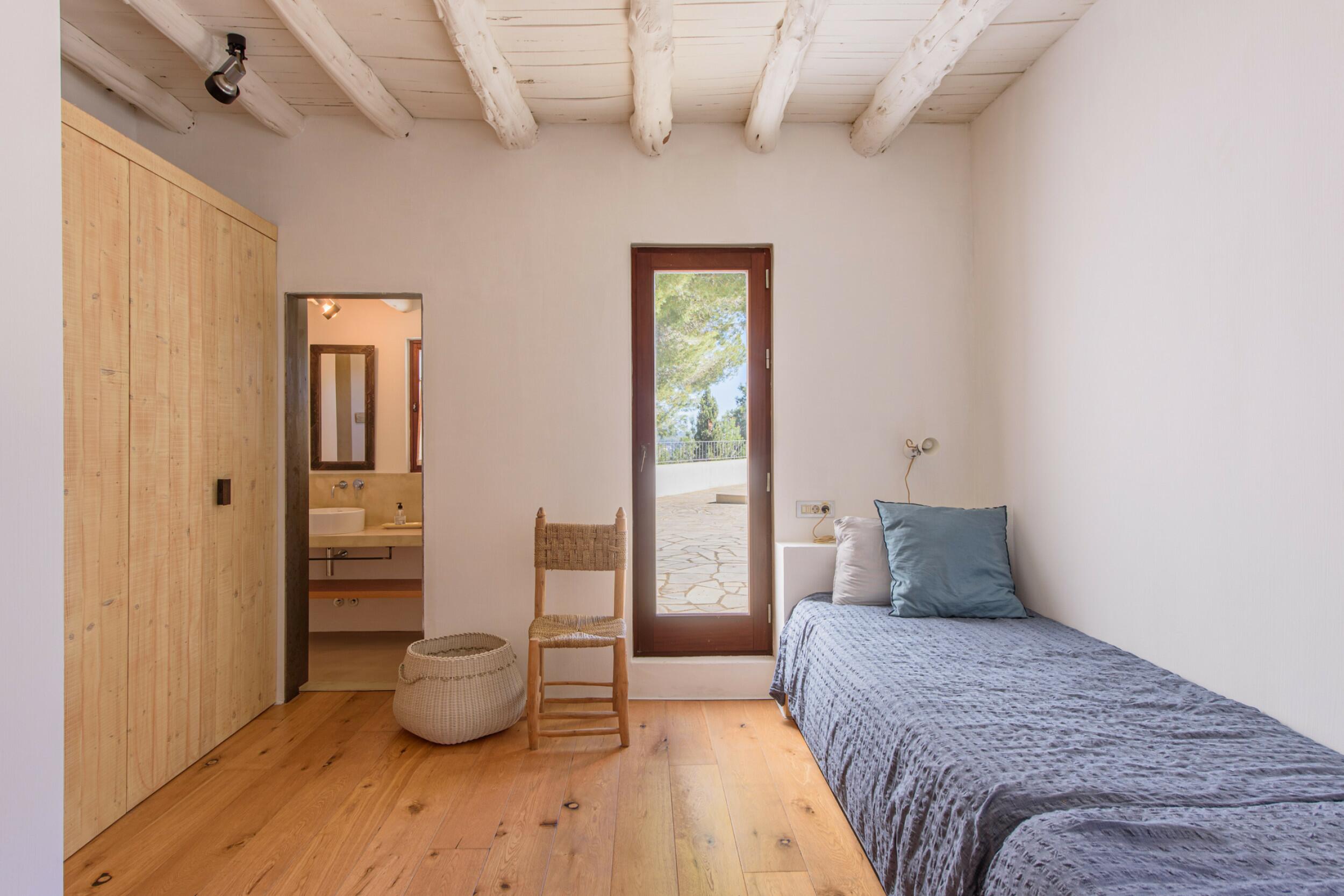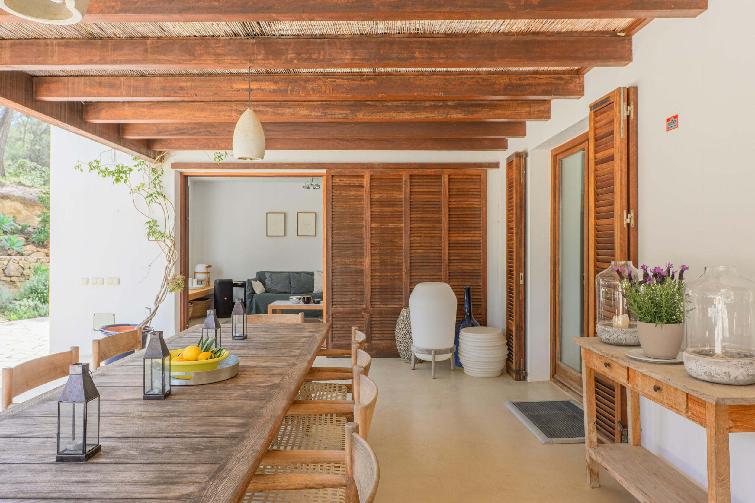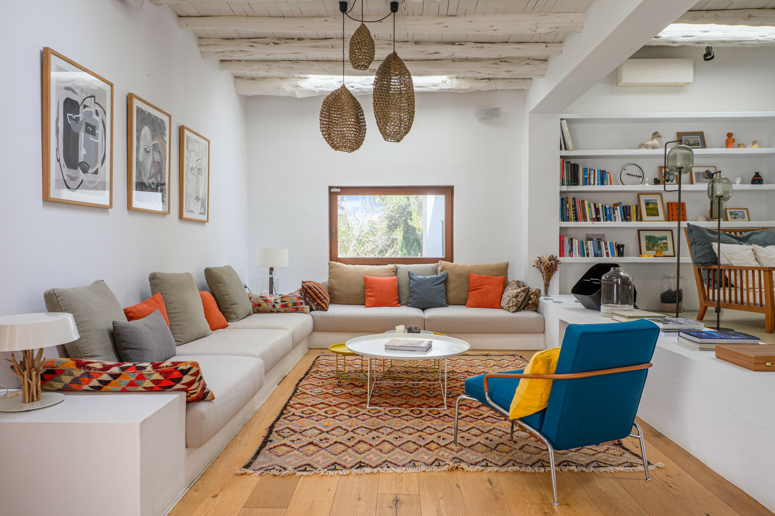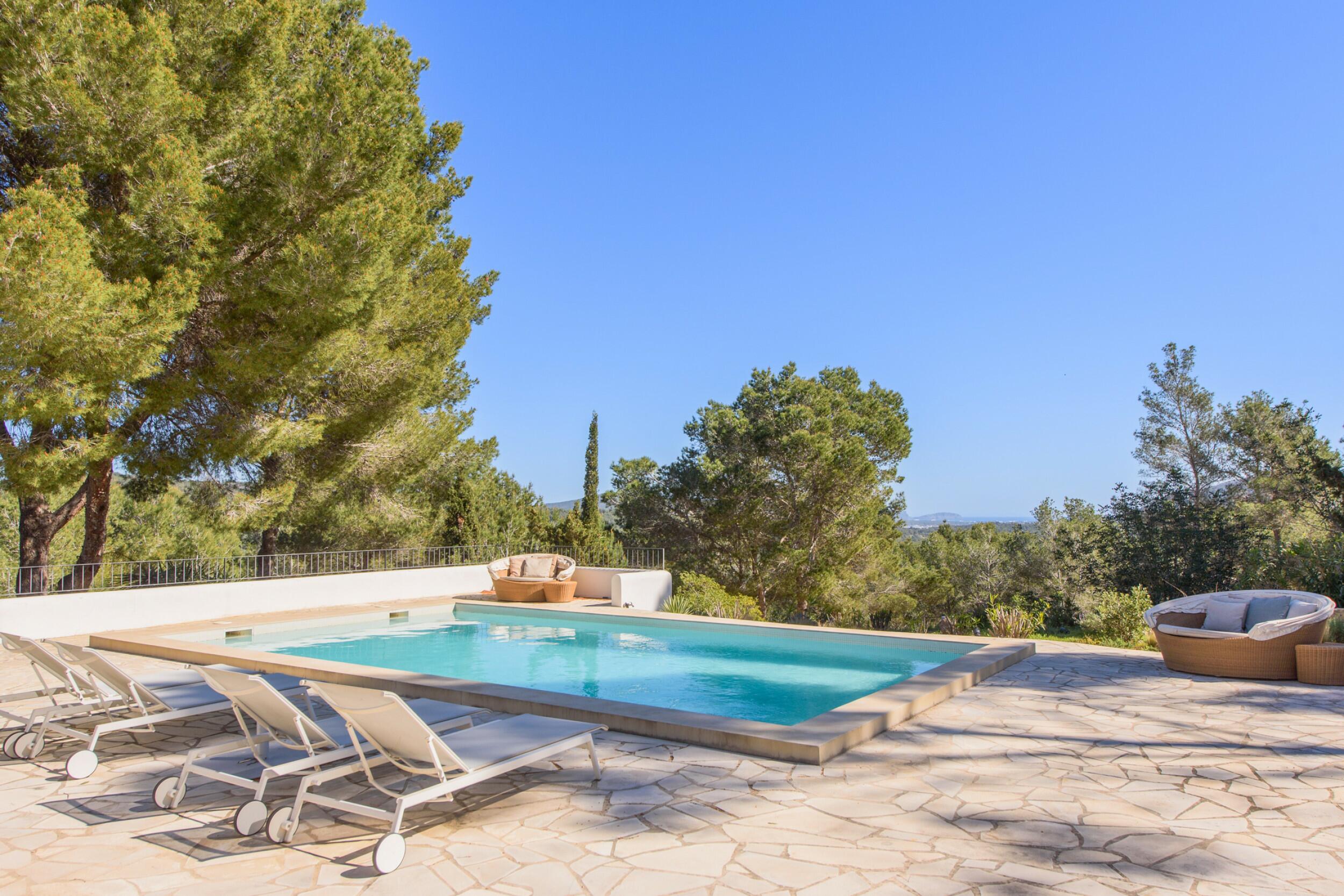 La Villa Turquoise est située dans le quartier d'Es Figueral, à proximité des plages de la côte est de l'île et du village de San Carlos, avec ses restaurants et ses magasins ouverts toute l'année. Elle est orientée au nord-est et offre une vue imprenable sur la mer et les collines.