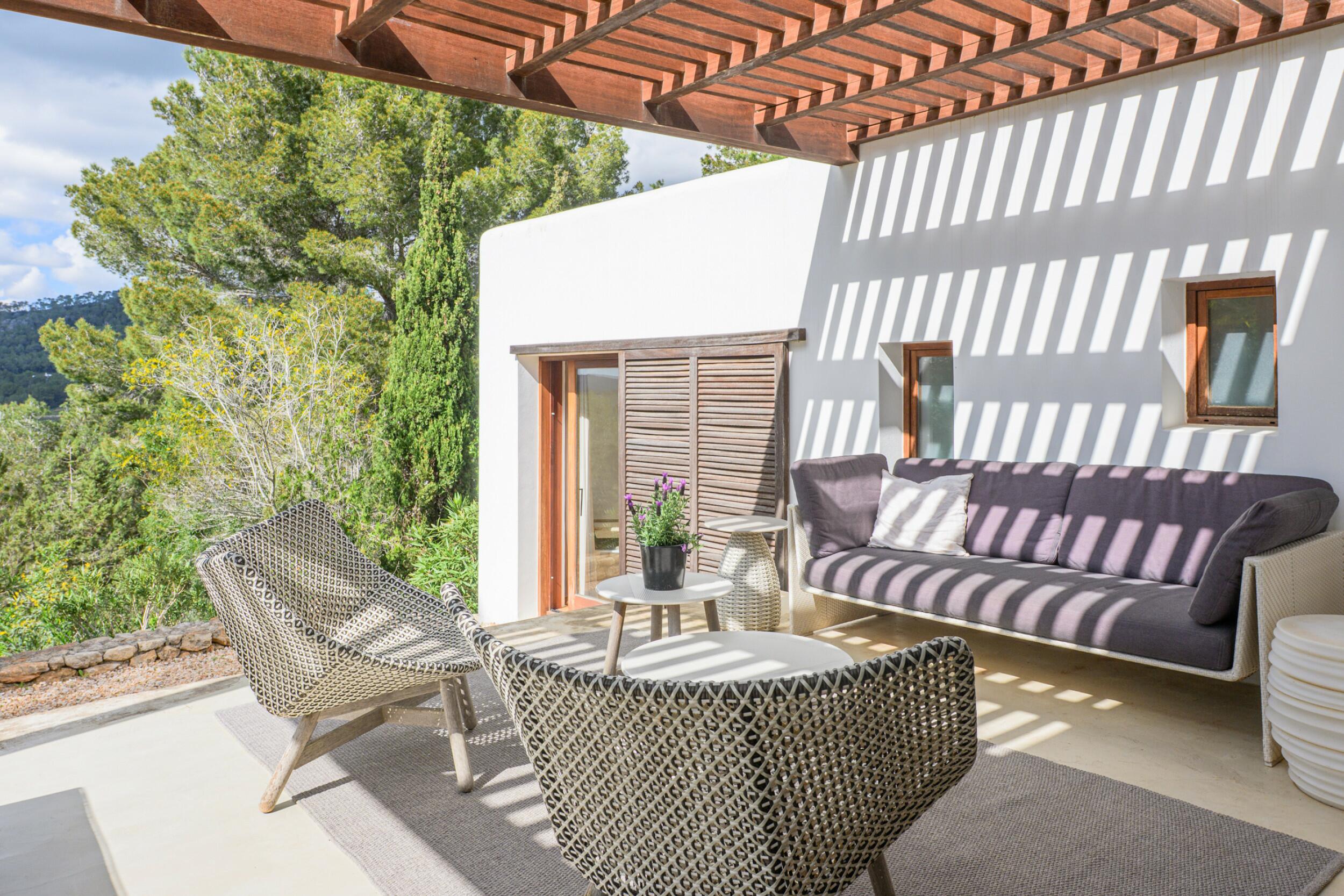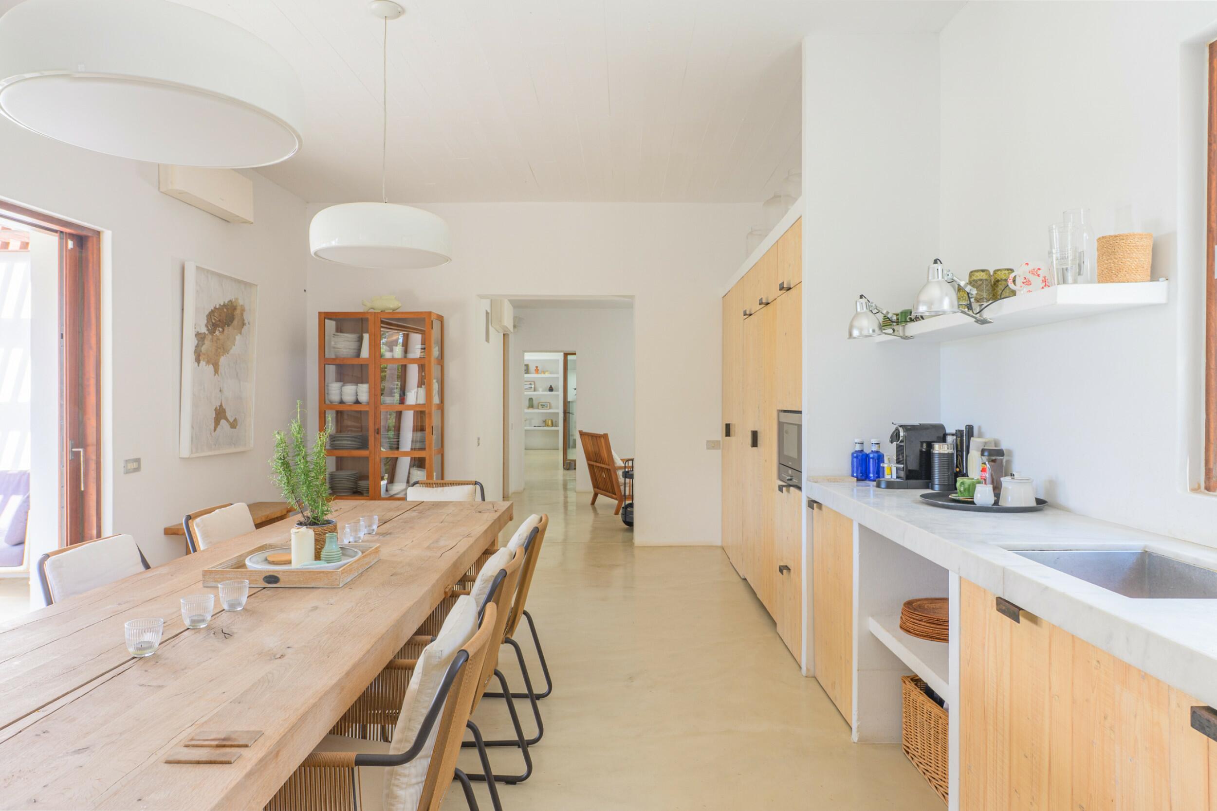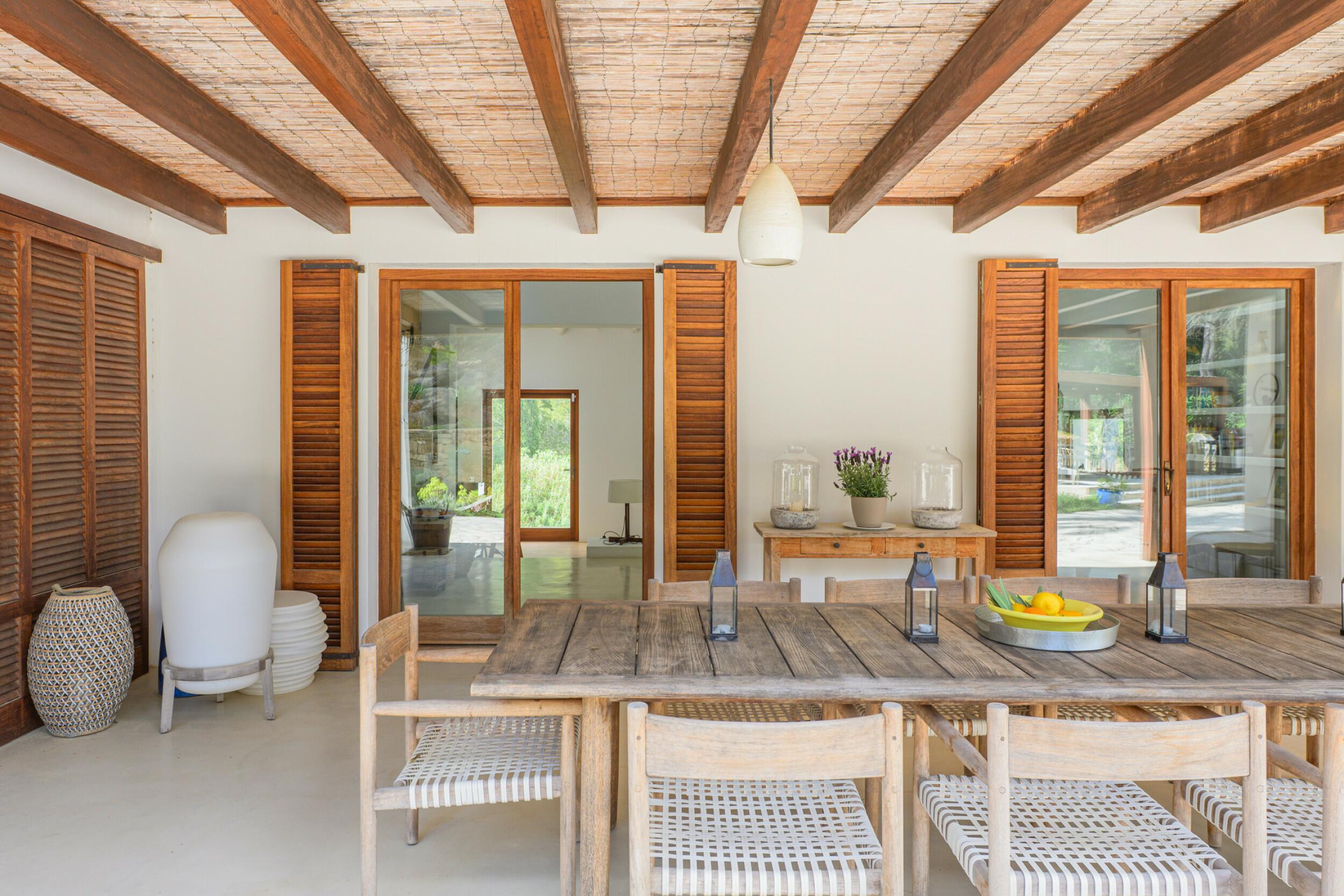 La Villa Turquoise est située dans le quartier d'Es Figueral, à proximité des plages de la côte est de l'île et du village de San Carlos, avec ses restaurants et ses magasins ouverts toute l'année. Elle est orientée au nord-est et offre une vue imprenable sur la mer et les collines.