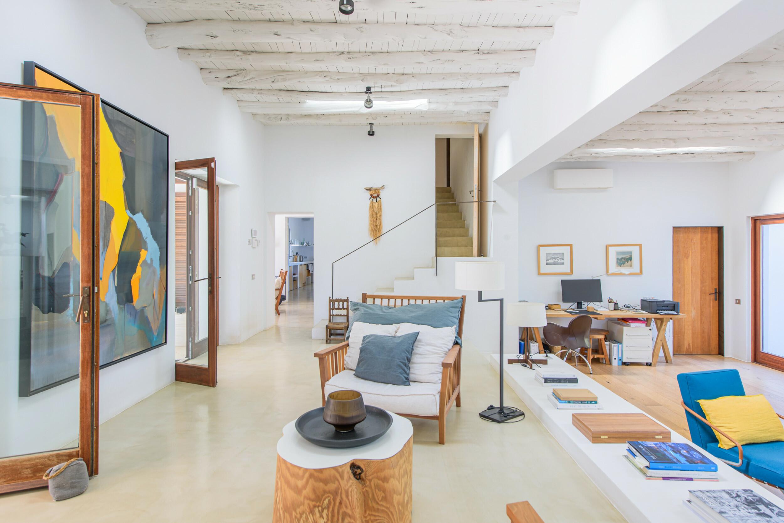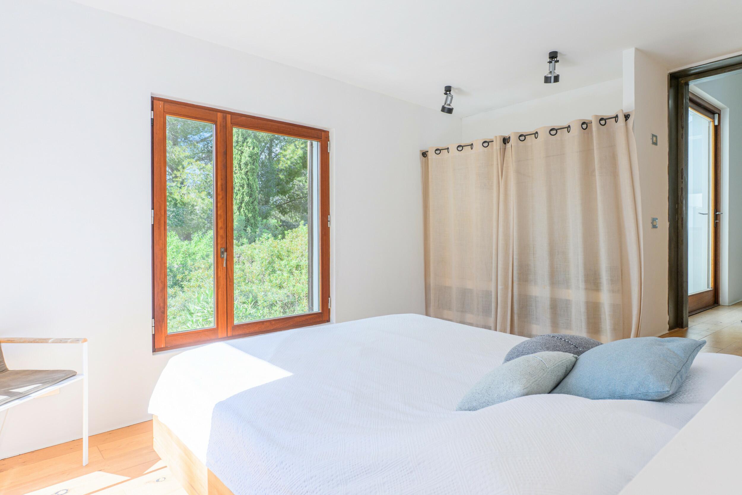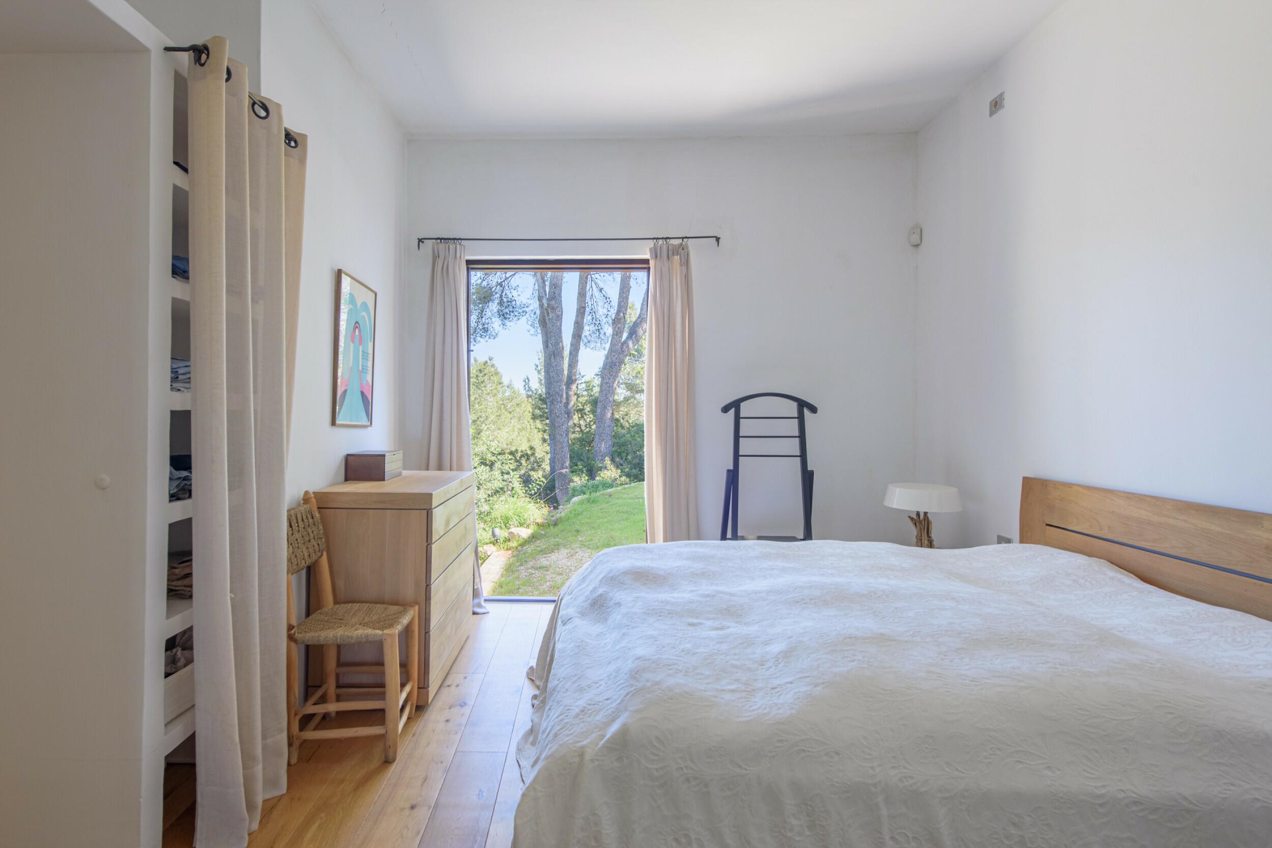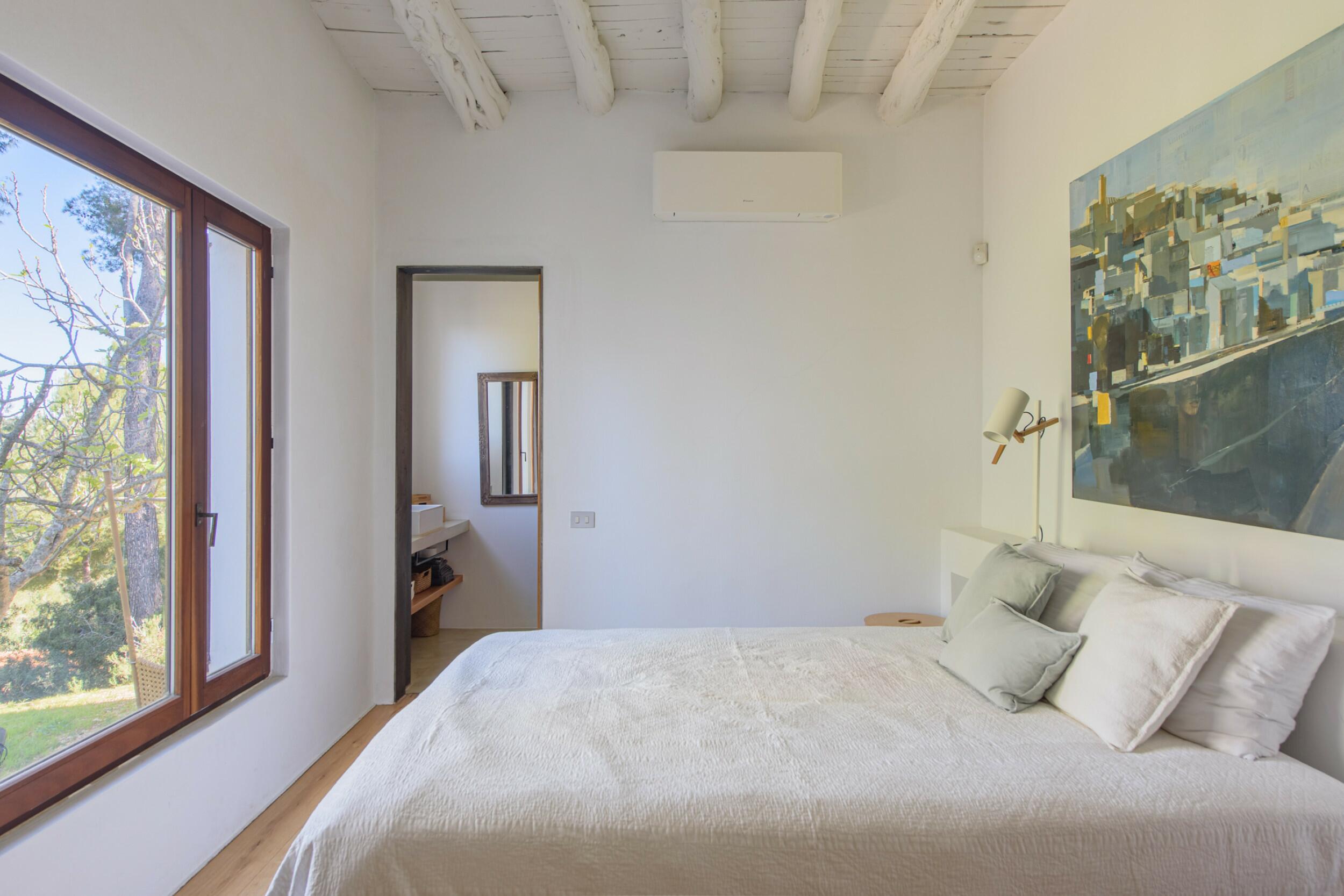 La Villa Turquoise est située dans le quartier d'Es Figueral, à proximité des plages de la côte est de l'île et du village de San Carlos, avec ses restaurants et ses magasins ouverts toute l'année. Elle est orientée au nord-est et offre une vue imprenable sur la mer et les collines.