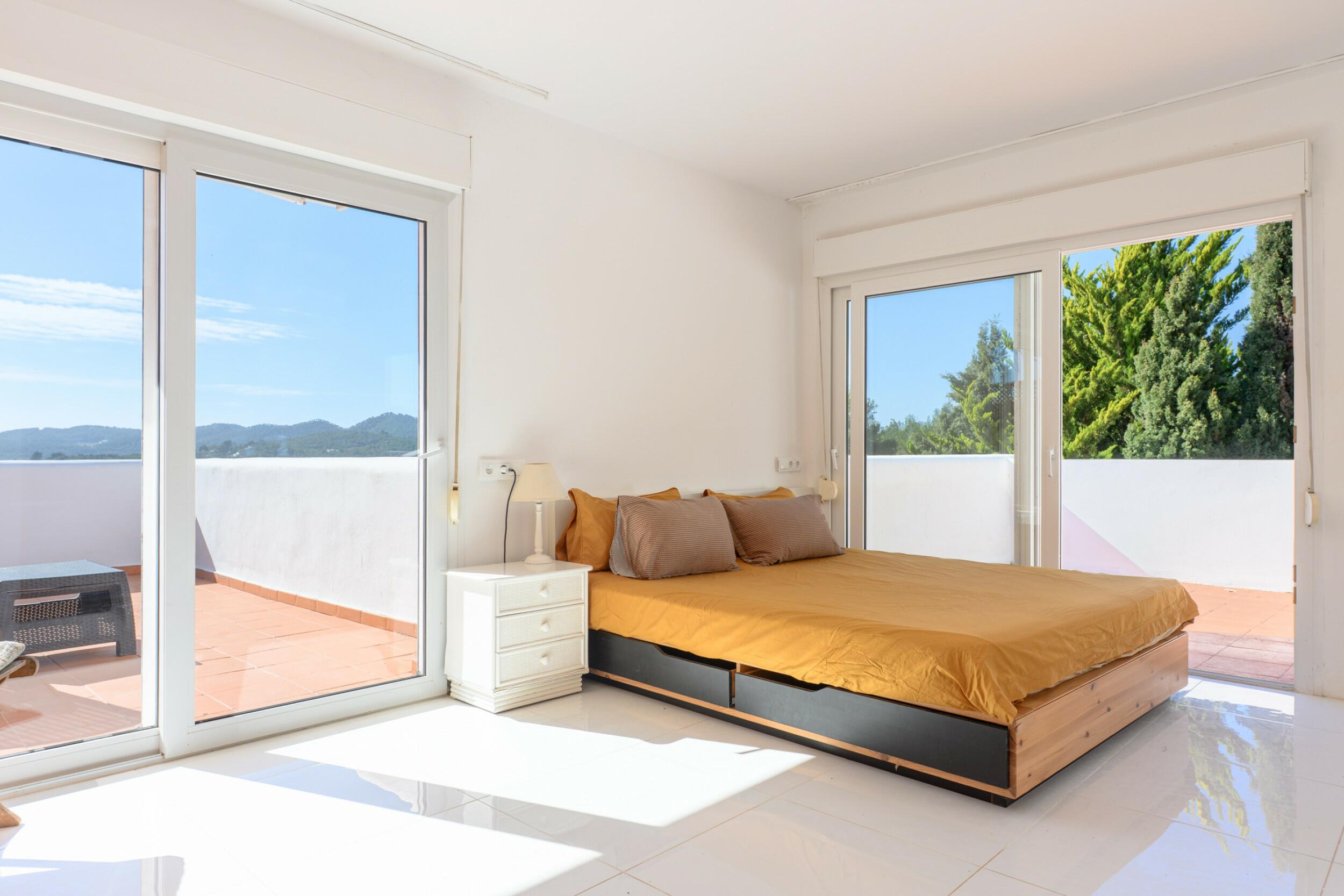 Situé à moins de 15 minutes de la ville d'Ibiza et de la Marina Botafoch, et à environ 25 minutes de l'aéroport. Les plages les plus proches sont la baie de Talamanca, S'Estanyol et Cala Olivera. Le terrain de golf d'Ibiza se trouve à 20 minutes et l'école internationale Morna est accessible en moins de 15 minutes. La villa est orientée au sud avec une vue imprenable sur la campagne et une vue lointaine sur la mer en direction de Dalt Vila depuis le niveau supérieur.