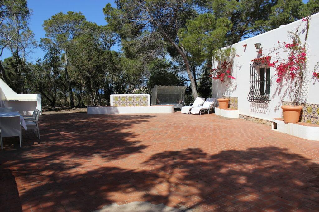 Les espaces extérieurs sont conçus pour la détente et le plaisir. La grande piscine de 12,5 x 4 m, dotée d’un solarium et d’un espace de détente, vous invite à profiter du soleil d’Ibiza. Une petite cuisine extérieure et des toilettes ajoutent à la commodité, et un court de tennis privé offre une touche supplémentaire d’exclusivité pour les amateurs de sport.