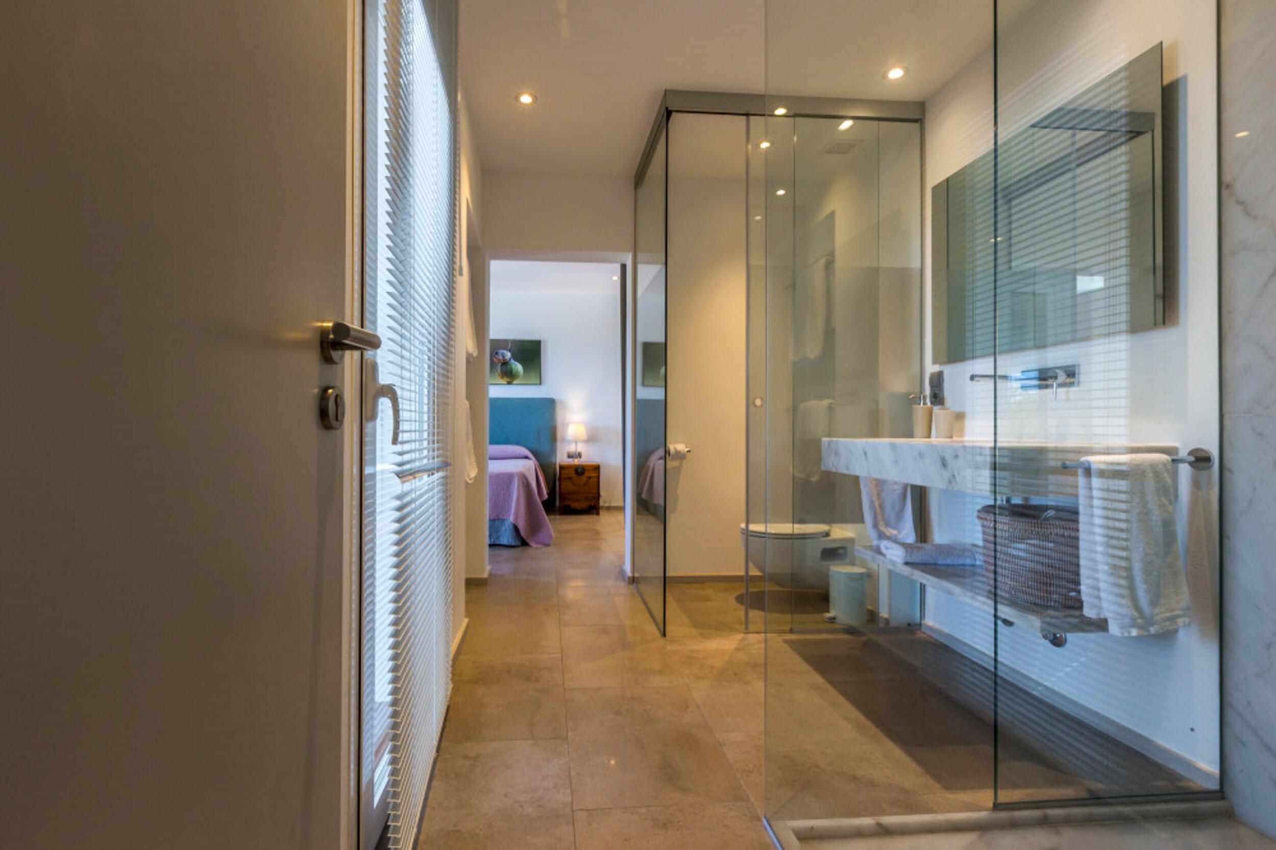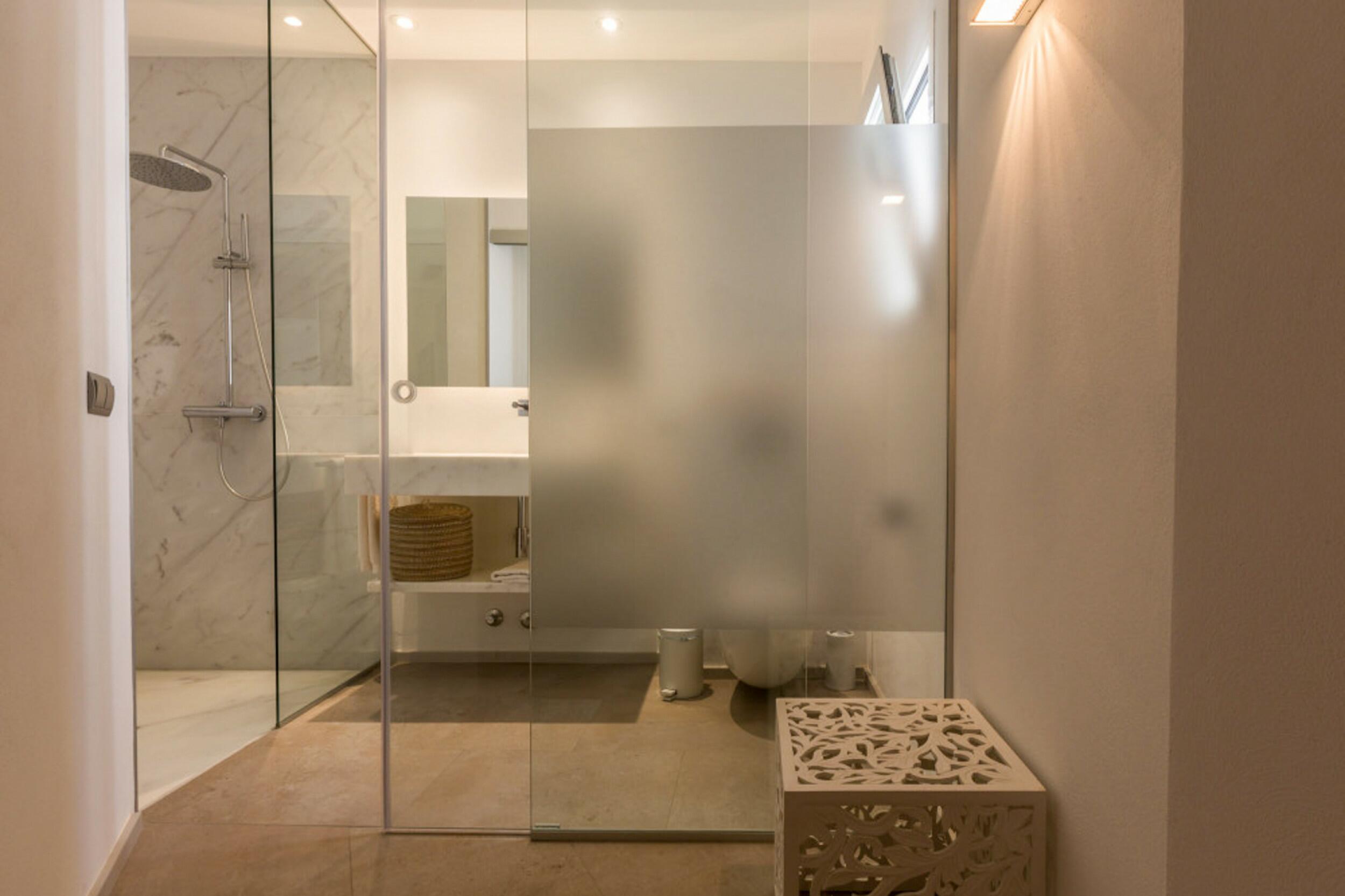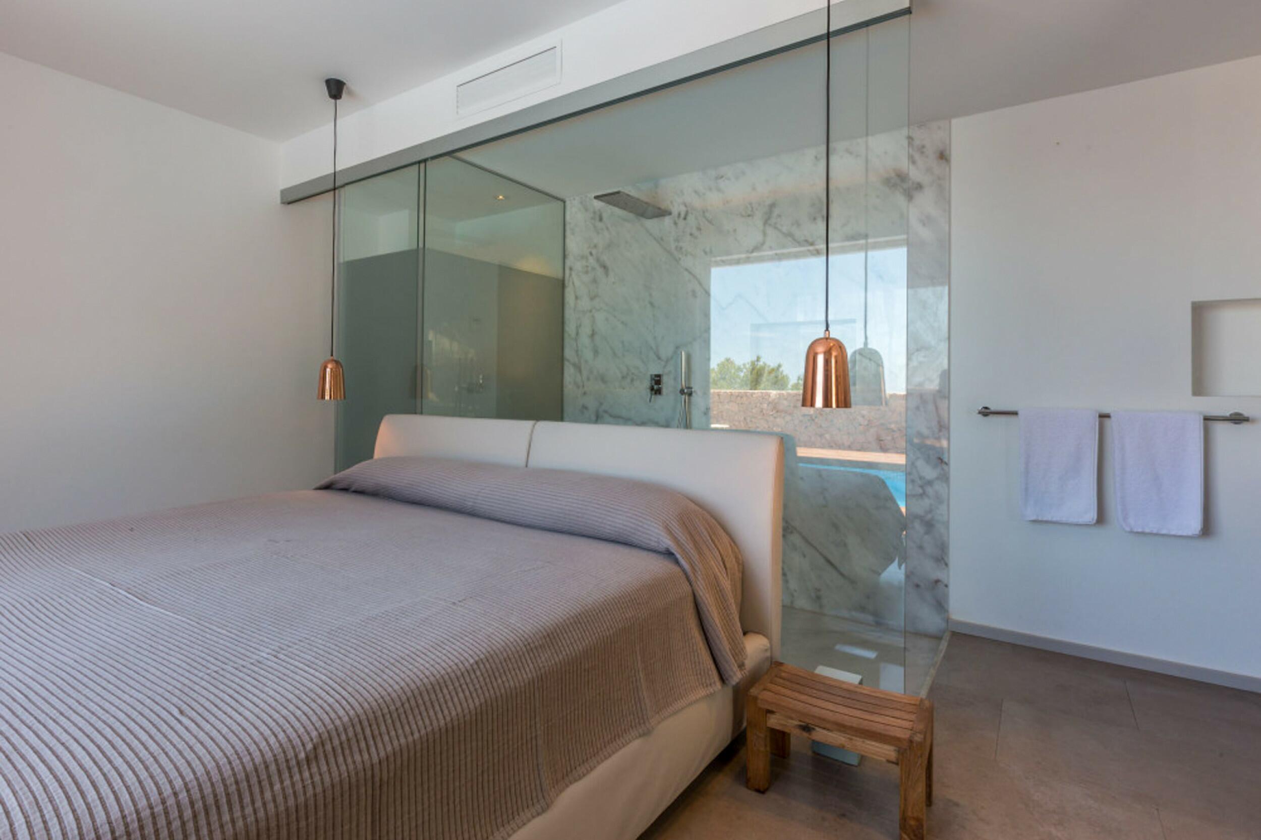 Cette parcelle de 2 884 m2 avec une construction de 329 m2 est répartie sur trois niveaux avec une orientation orientée sud-ouest, ce qui garantit de nombreuses heures de soleil et des couchers de soleil toute l’année. Il est situé à seulement 6 minutes (en voiture) des plages de Cala Salada et Cala Gracio, à 20 minutes d’Ibiza et à 24 minutes de l’aéroport.