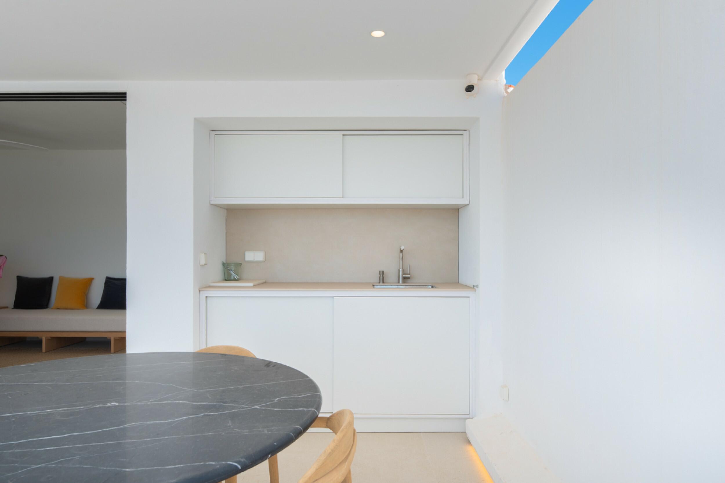 En moyenne, les propriétés dans la ville de San Antonio à vendre se trouvent autour de 3.500 € par m2 et en moyenne 350.000 €. La demande de biens immobiliers de la ville de San Antonio en général est nettement inférieure à celle du reste de l’île, mais un éventail fantastique de possibilités est disponible, en particulier pour ceux qui cherchent à acheter comme option d’investissement. New Bahia San Antonio complex is a residential building originally designed by one of the island’s most respected architects and is currently under construction, to the highest quality standards. Il est situé dans une forêt de pins tranquille près de la baie de San Antonio de Portmany et se compose d’un total de 32 appartements.