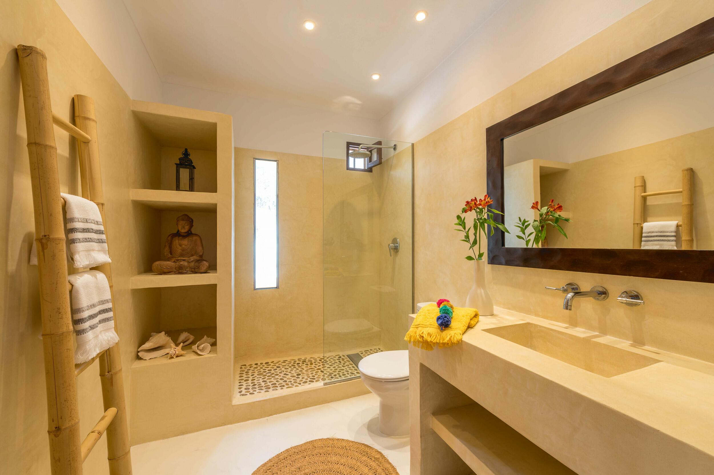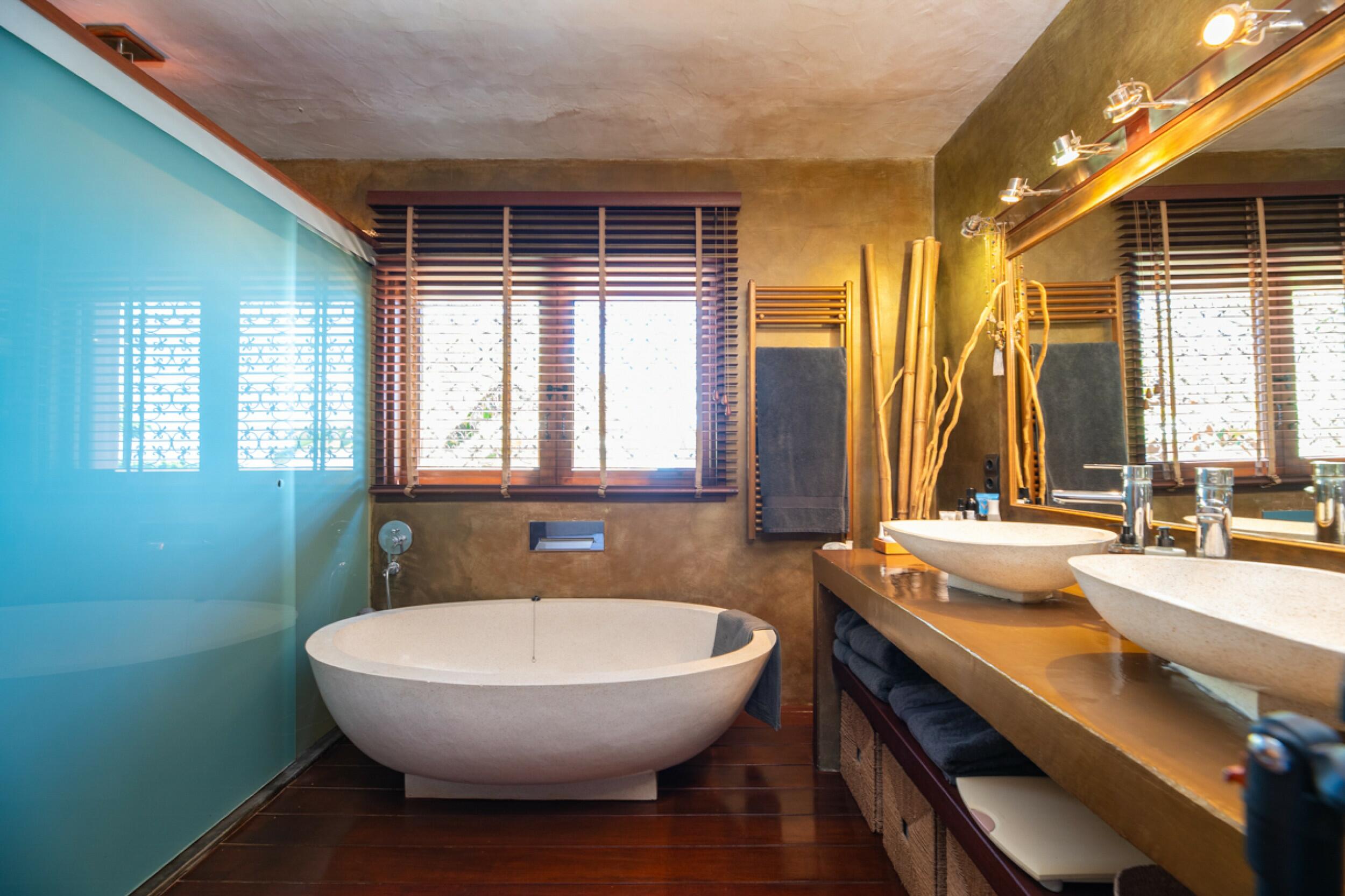 L'architecture moderne et chaleureuse, épurée d'une décoration ethnique et les matériaux et équipements de haute qualité utilisés donnent un caractère authentique et luxueux à la villa.
