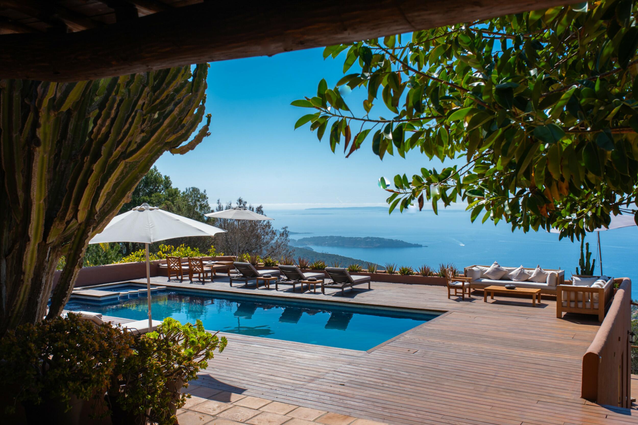 Sur un terrain de 10 000 m2, la villa de 300 m2 est une oasis de végétation méditerranéenne et tropicale face à la mer, idéale pour se déconnecter et profiter de ses vacances.
