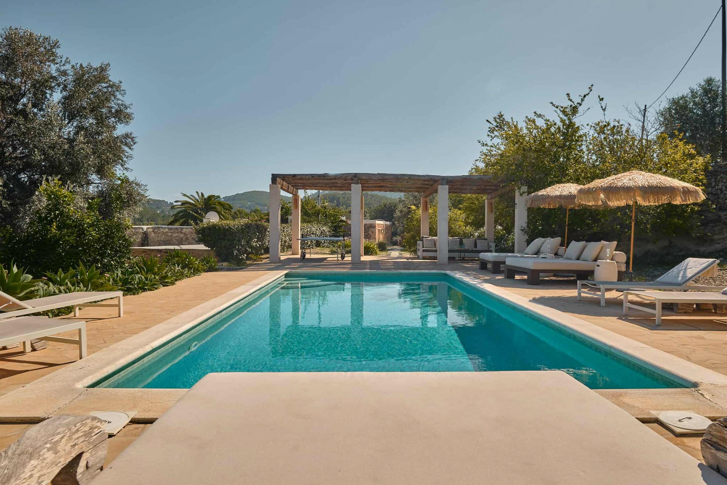 Nichée sur la colline, dans un environnement très calme, sans voisins et en pleine nature, Can Pujol Bassa est une maison idéale pour profiter de la tranquillité d'Ibiza en famille ou entre amis. C'est une charmante finca rénovée en 2011 avec 5 chambres et tout le confort.