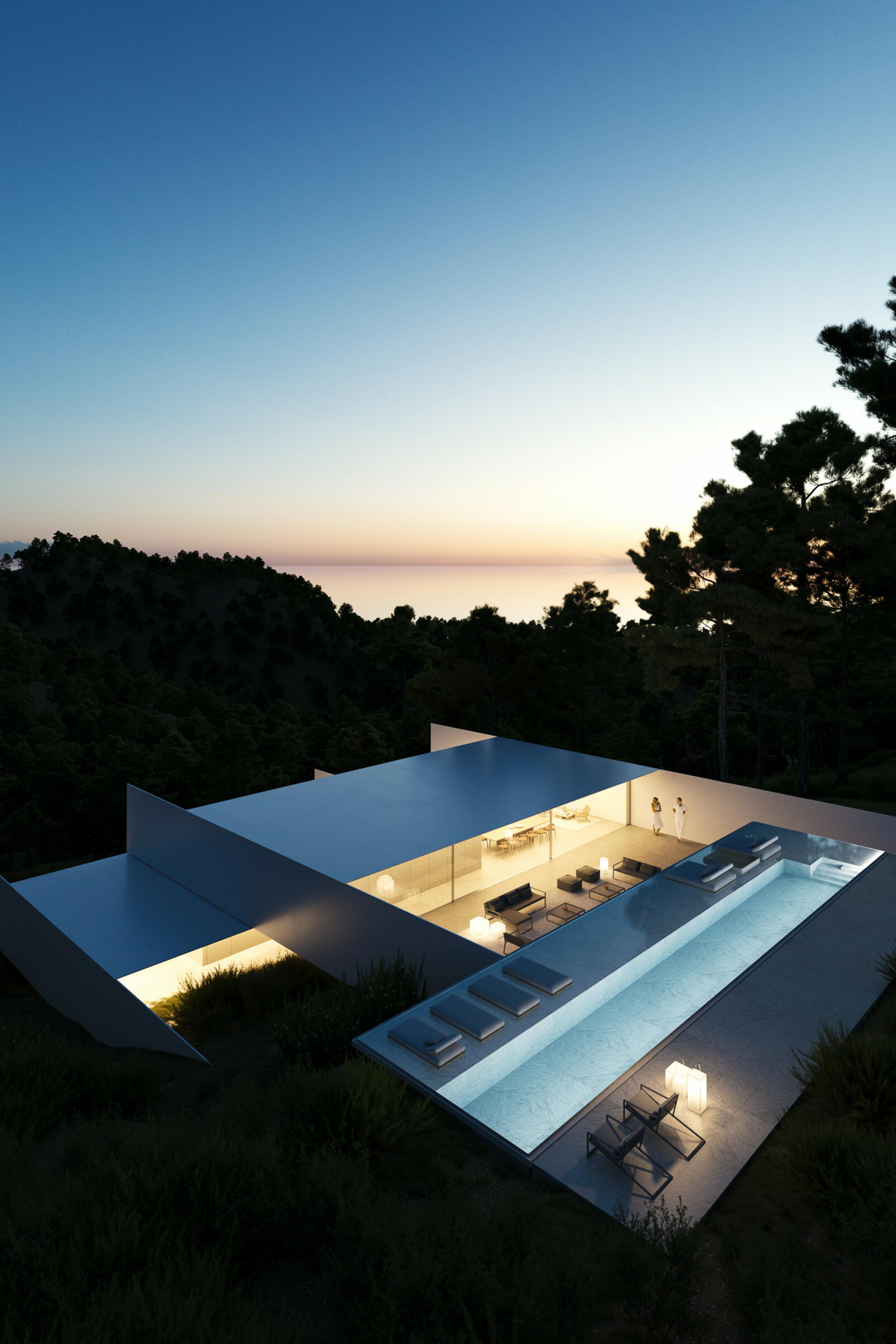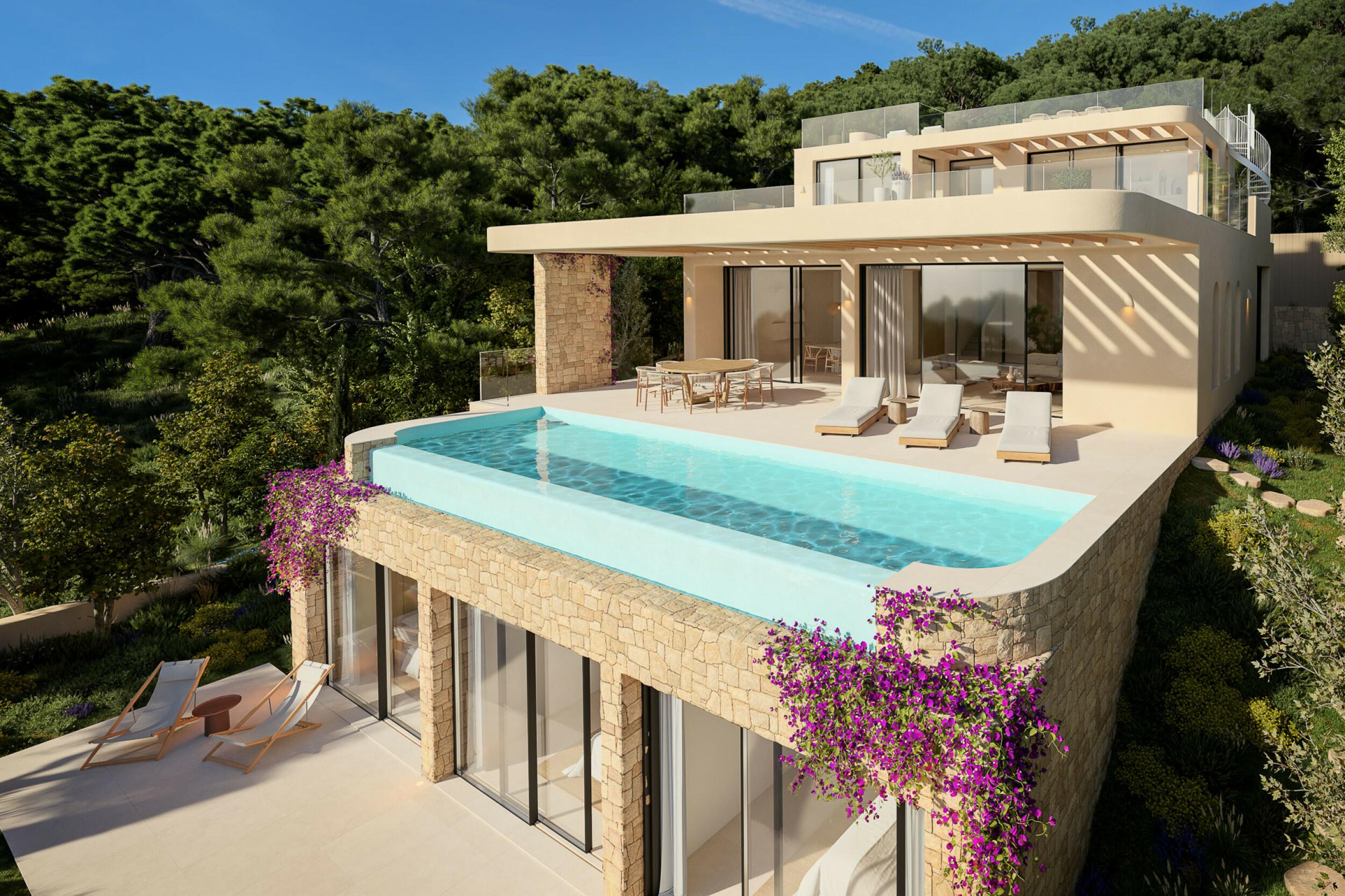 Villa moderne avec sept chambres, piscine et vue imprenable sur la mer