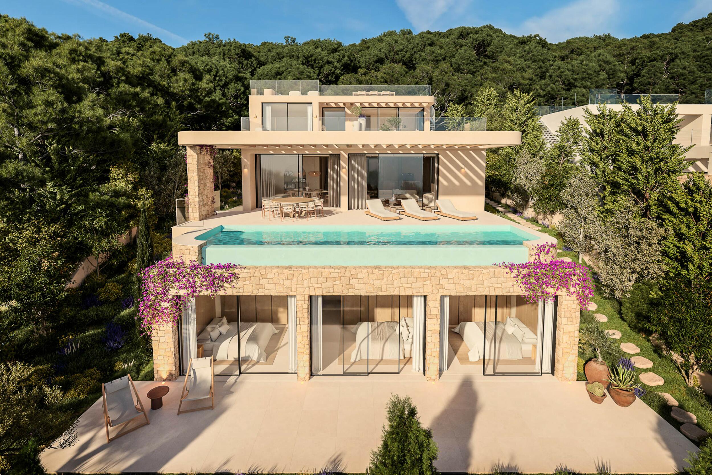 Villas neuves de luxe avec piscine et jardin près de la ville d’Ibiza
