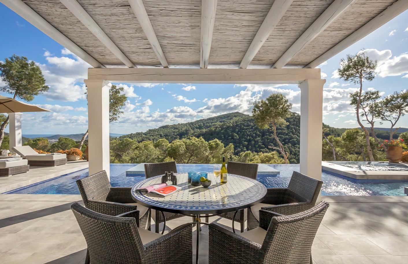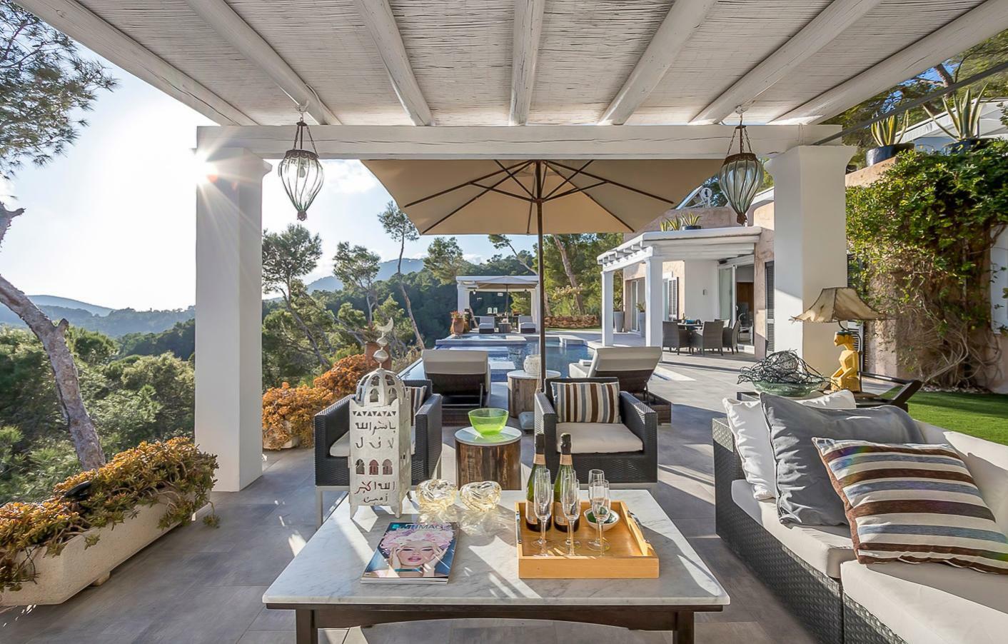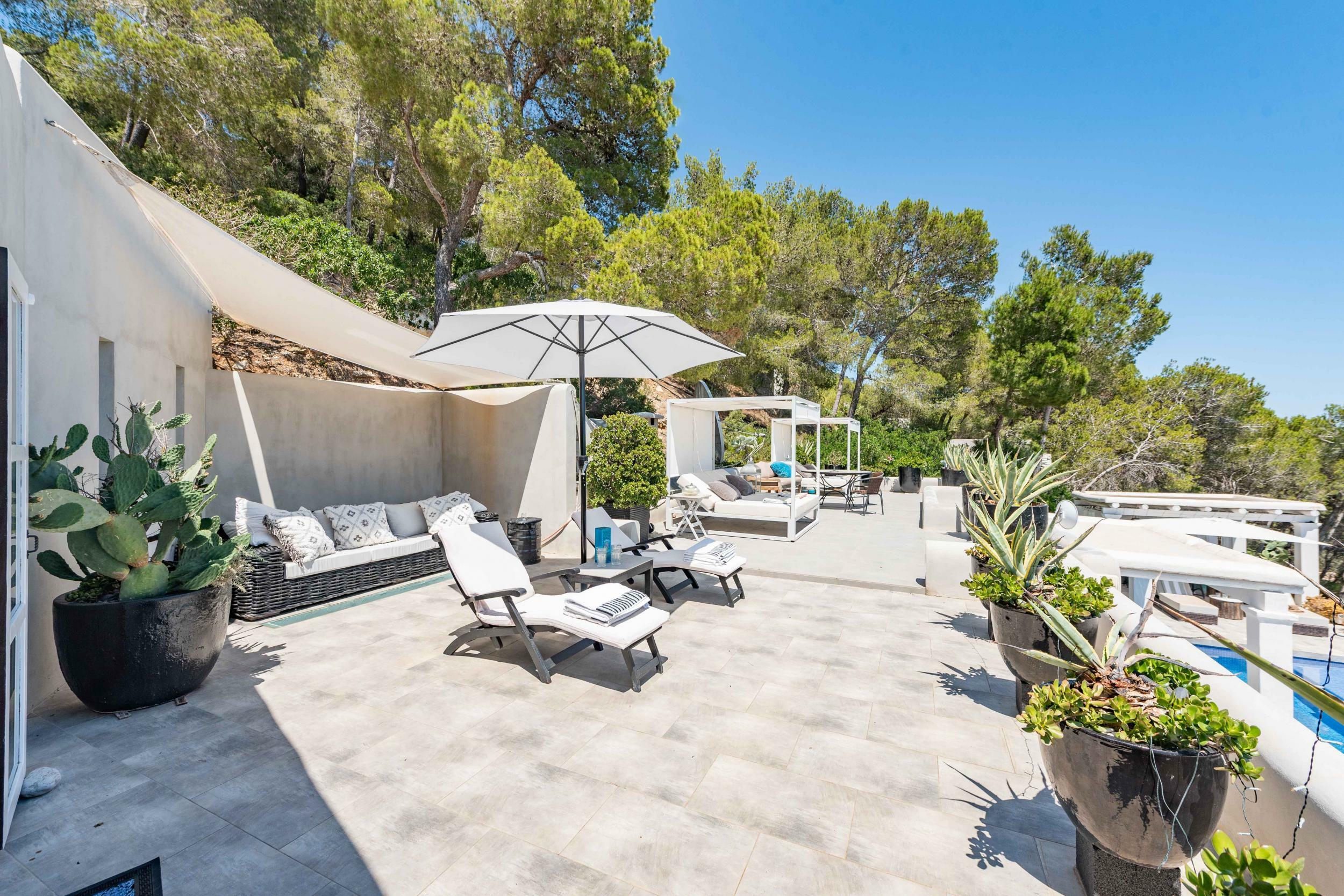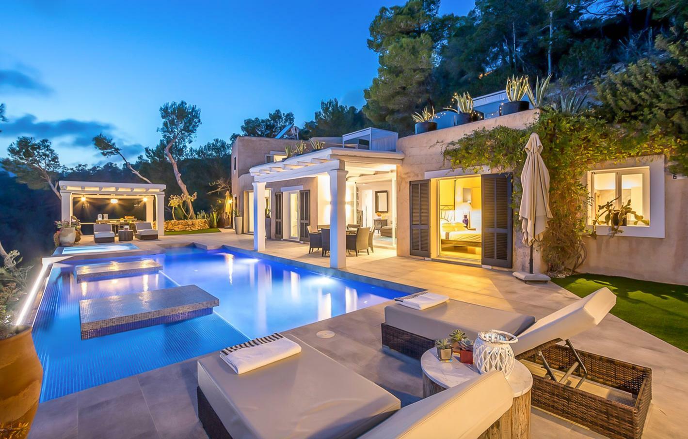 Villa familiale moderne au nord d’Ibiza avec cuisine extérieure et espace pour enfants